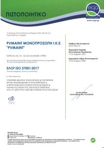 Στην PVMAINT εφαρμόζουμε συστήματα πιστοποίησης τα οποία είναι πλήρως εναρμονισμένα με το περιβάλλον όπου δραστηριοποιούμαστε. Πρωταρχικό μας μέλημα είναι η εξασφάλιση της υγείας και ασφάλειας των εργαζομένων μας σε κάθε έργο που αναλαμβάνουμε.